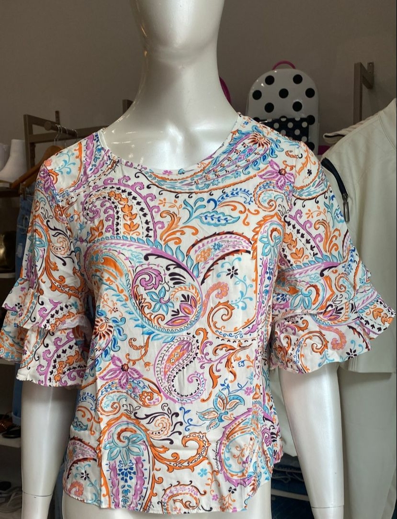 A BLUSA MANGA CURTA ESTAMPADA - LANÇA PERFUME é uma peça indispensável no guarda-roupa de quem busca elegância e conforto. Confeccionada em tecido leve, destaca-se por sua estampa atraente que traz um frescor a qualquer look.