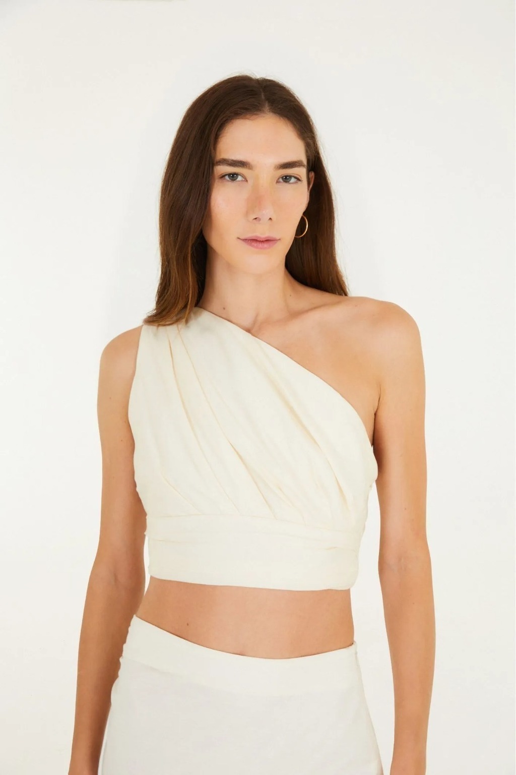Blusa ombro só paraíso. com design assimétrico, traz modernidade e frescor ao visual. O detalhe de um ombro só e a modelagem ajustada criam um visual casual e impactante ao mesmo tempo. Perfeita para um happy hour ou um passeio ao ar livre. Uma peça essencial no guarda-roupa de quem busca originalidade e estilo. FARM RIO original - verão 26.
